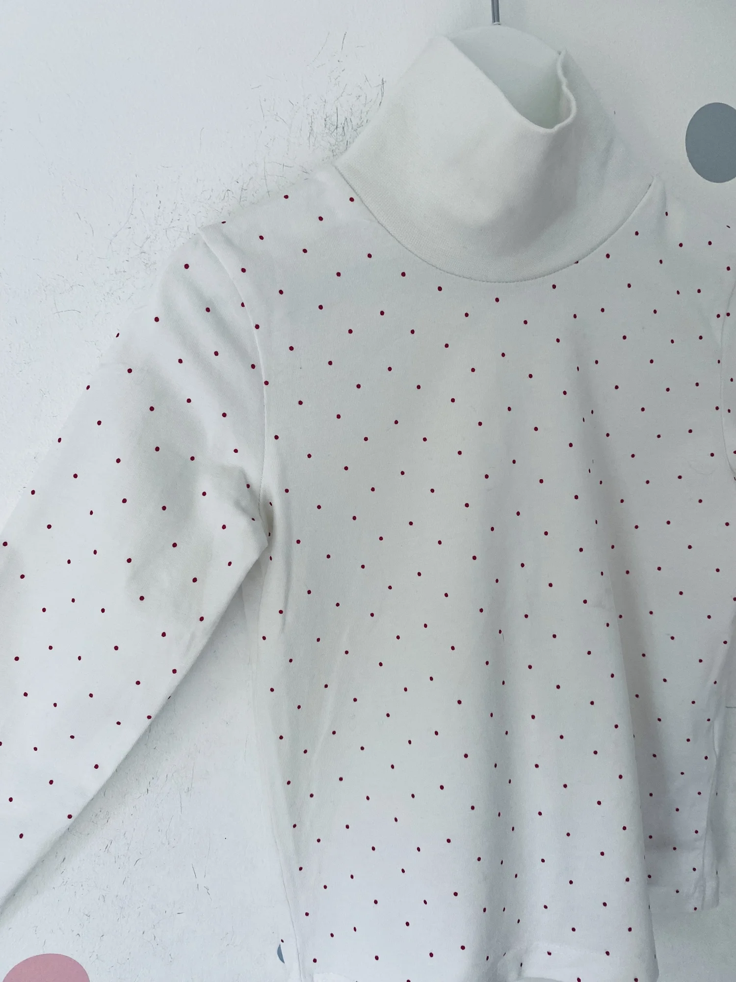 Item Description: White long sleeve turtleneck jumper with a red polka dot print